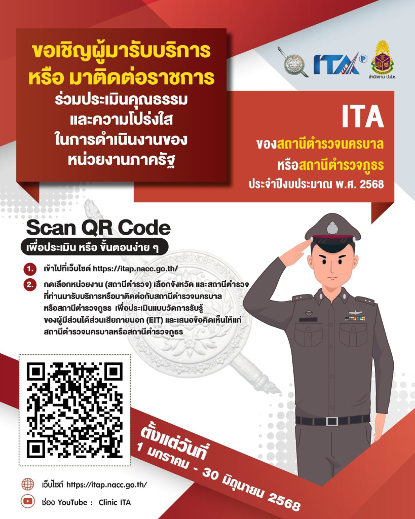 ขับเคลื่อนการประเมินคุณธรรมและความโปร่งใสในการดำเนินงานของหน่วยงานภาครัฐ (Integrity and Transparency Assessment: ITA) ของสถานีตำรวจประจำปีงบประมาณ พ.ศ. 2567 (ระดับสถานีตำรวจ)