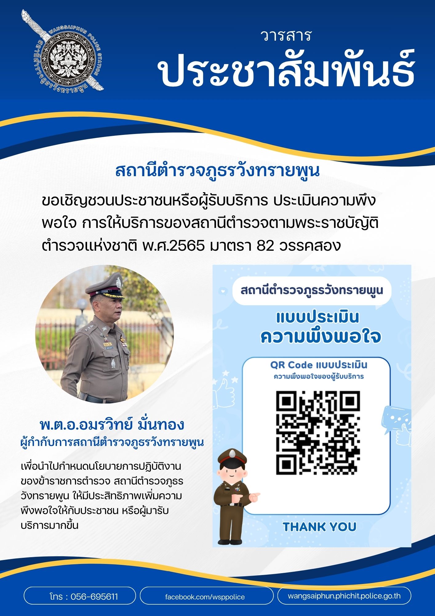 วันที่ 9 มกราคม 2568 เวลาประมาณ 11.00 น. ส.ต.ต.เอกราช ศรทรง ผบ.หมู่(ป.) สภ.วังทรายพูน ได้ให้บริการกั