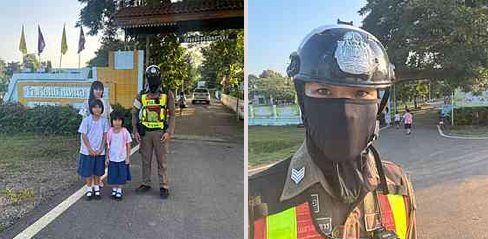 สายตรวจจราจร อำนวยความสะดวกด้านการจราจร บริเวณหน้าโรงเรียนบ้านหนองพระ
