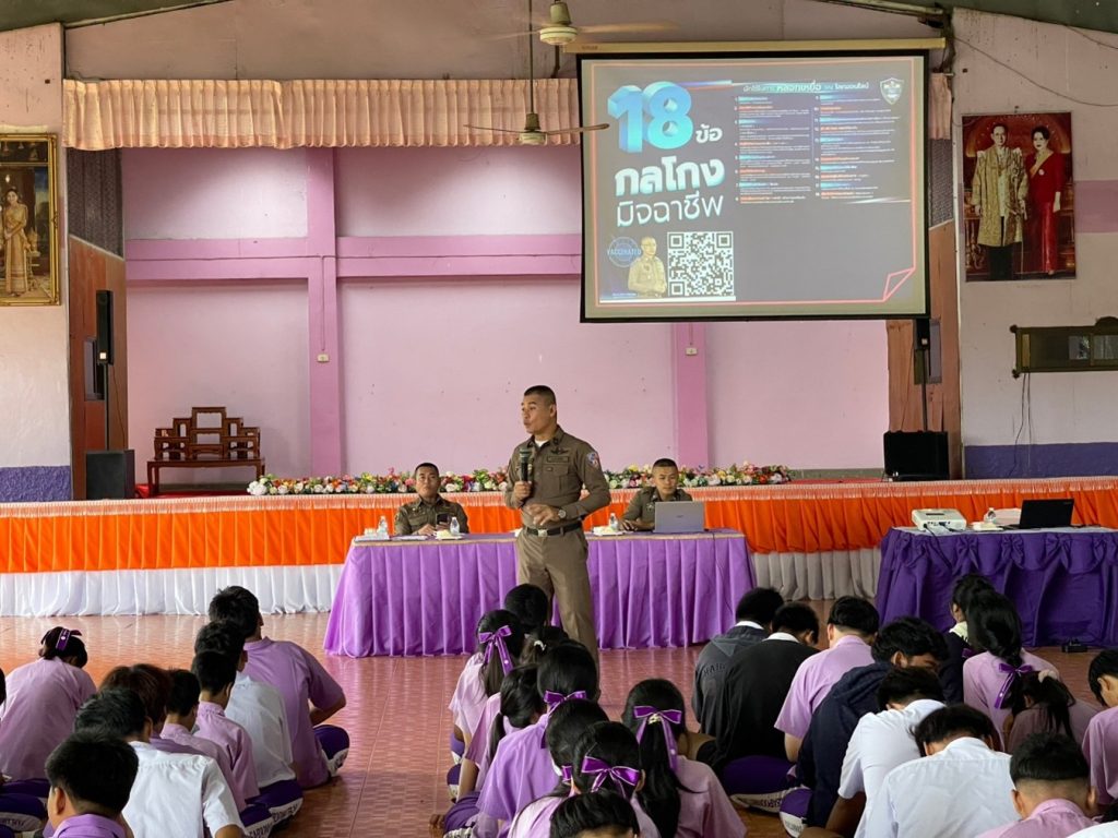 เมื่อวันที่ 25 ต.ค.67 เวลาประมาณ 09:00 น. พ.ต.ท.จาตุรันต์ กะมุทา รอง ผกก.ป.สภ.วังทรายพูน และ พ.ต.ท.พ.ต.ท.สิรวิชญ์ หัตถปะนิตย์ สวป.สภ.วังทรายพูน พร้อมด้วยเจ้าหน้าที่ตำรวจ สภ.วังทรายพูน อบรมเรื่องอาชญากรรมออนไลน์ เรียนรู้ 18 กลโกง ให้กับคณะครูและนักเรียนโรงเรียนวังทรายพูนวิทยา ต.หนองพระ อ.วังทรายพูน จ.พิจิตร ณ บริเวณห้องประชุม โรงเรียนวังทรายพูนวิทยา ต.หนองพระ อ.วังทรายพูน จ.พิจิตร